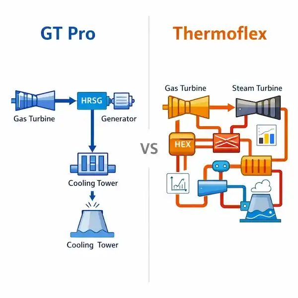 وقتی هدف مهندس، مقایسه گزینههای مختلف طراحی نیروگاه، تخمین راندمان، توان خروجی و انتخاب پیکربندی مناسب است، GT Pro بهدلیل سرعت بالا و ساختار استاندارد خود، انتخاب منطقیتری نسبت به Thermoflex خواهد بود.